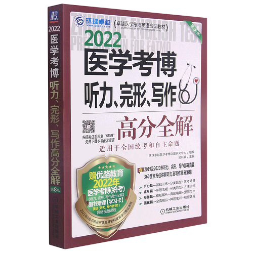 2022医学考博听力完形写作高分全解 第8版 卓越医学考博英语应试教材 医学考试类书籍。