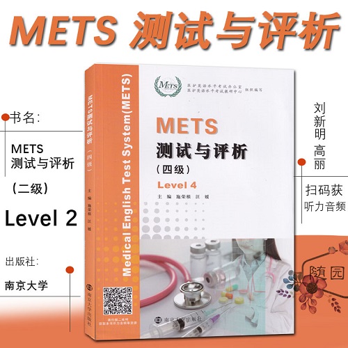 METS测试与评析(四级)施荣根 汪媛 level 4 南京大学出版社 高校教材 全国医护英语水平考试模拟试卷强化教程答案解析 医护英语。