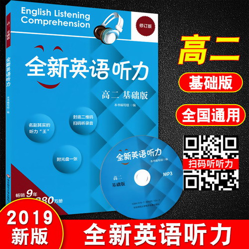 正版现货 全新英语听力 高二 基础版 高二年级/高2年级(修订版)附MP3光盘 华东师范大学出版社 高中生英语听力训练模拟练习试题。