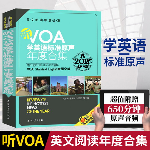 全新正版 听VOA学英语标准原声年度合集2018版 新闻原声原文中英文对照 学习英语精读泛读词汇译文技巧 英语考题源 石油工业出版社。