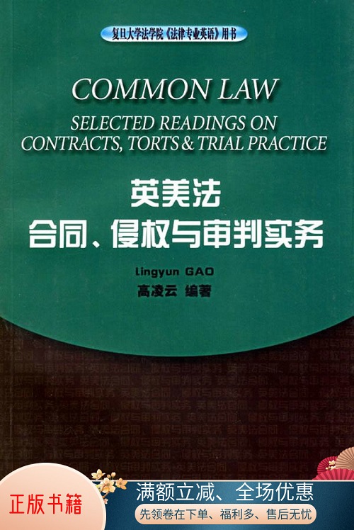 正版书籍 复旦大学法学院法律专业英语用书 英美法:合同、侵权与审判实务 高凌云 上海人民出版社 著 978720806375。