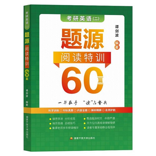 考研英语(二)题源阅读特训60篇:谭剑波 著 研究生考试 文教 国家开放大学出版社。