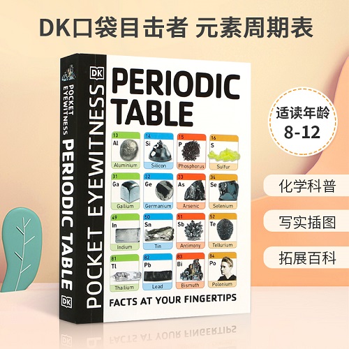 把一本 DK《Pocket Eyewitness Periodic Table》英文原版真正拿在手里,你首先会意识到:这哪是“口袋书”,分明是把一座微缩科技馆塞进了牛仔裤后袋——172 × 130 mm 的娇小身材,却在 160 克重的哑粉纸上排布了 118 个元素的立体宇宙。