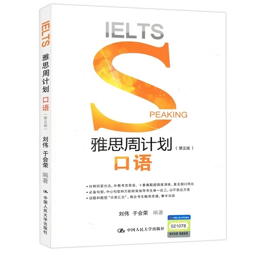 正版包邮 人大版 雅思周计划(第五5版)口语 IELTS 刘伟 于会荣 中国人民大学出版社 9787300287348。