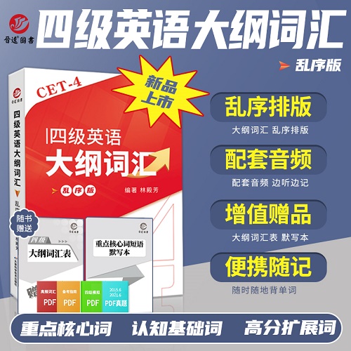 新品 大学英语四级大纲词汇 乱序版 cet4单词书核心词基础词 扩展词真题例句便携版 词汇手册口袋书 赠送大纲词汇表 单词配套音频。