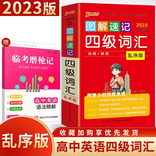 备考2023年12月 图解速记四级词汇书 单词词汇乱序版 大学英语4级单词书 cet4考试复习资料 PASS绿卡图书 词根联想记忆法 巧记口袋书。