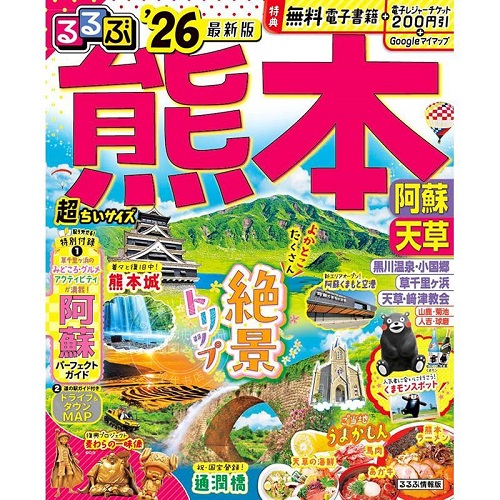 进口日文 旅游书 日本游 るるぶ熊本 阿蘇 天草'26 超ちいサイズ るるぶ情報版 小型。