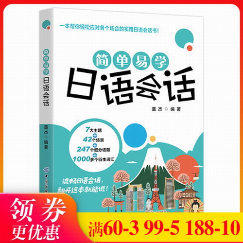 简单易学日语会话 董杰 7大主题+42个场景+247个细分话题+1000多个衍生词汇 涵盖生活中的方法面面 翻开这本就能说