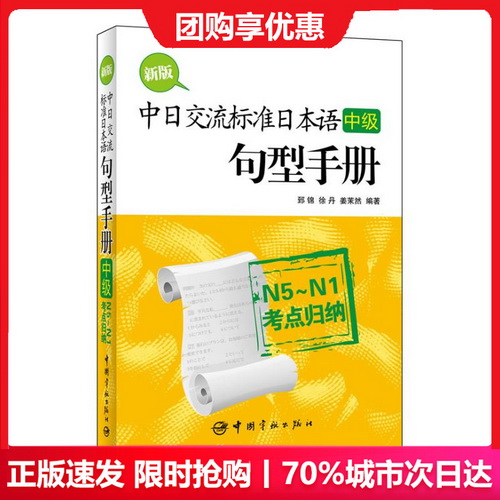 新版中日交流标准日本语 (中级) 句型手册 : N5~N1考点归纳 郅锦 著 日语文教 新华书店正版图书籍 中国宇航出版社。