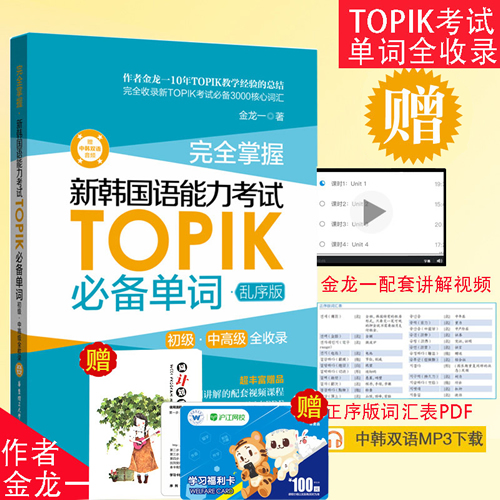 正版速发 完全掌握 新韩国语能力考试TOPIK必备单词 韩语书 韩语topik真题词汇 金龙一topik初级中高级词汇单词 韩语自学入门考试用书。