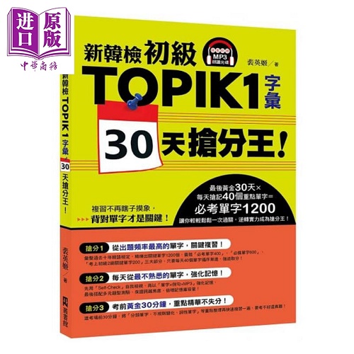 新韩检初级TOPIK 1字汇 30天抢分王 随书附赠MP3朗读光碟 港台原版 裴英姬 EZ丛书馆 韩语学习【中商原版】。