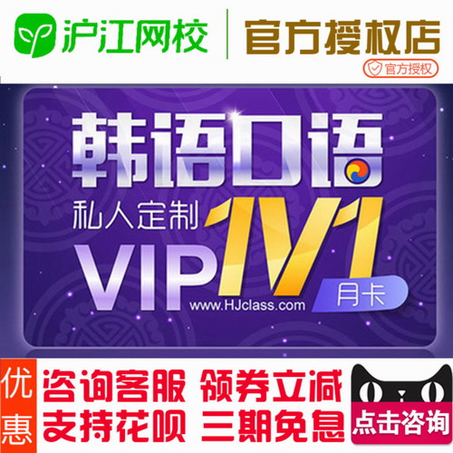 沪江网校 韩语口语私人定制VIP 1V1月卡自学视频在线课程课件底价