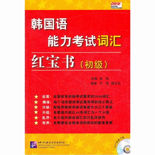 韩语词汇 韩国语能力考试词汇红宝书 初级版 金利著 北京语言大学出版社 韩语考试高频单词词汇教材书籍。