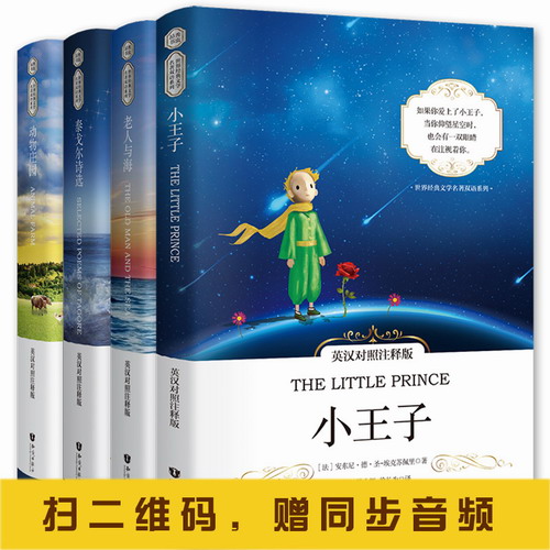 4册中英文双语 小王子+老人与海+动物庄园+泰戈尔诗选