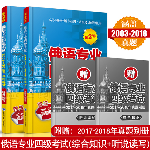 (备考2019-2020)俄语专业四级考试2003-2018年真题综合知识+听说读写(第2版共2本)/全国高校俄语专业四级真题/专4听力阅读写作口语