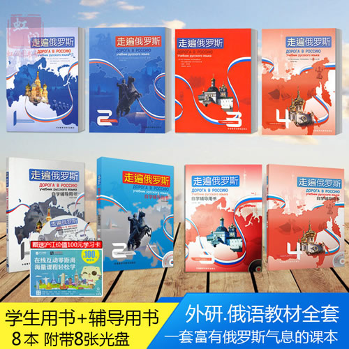 走遍俄罗斯全套8本 附8张光盘 走遍俄罗斯学生用书自学辅导