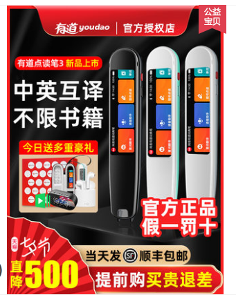 【阿里官方自营】网易有道点读笔3代 加强版词典笔 旗舰版 英语通用 课本同步 初中高中学习神器 翻译笔。